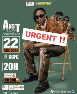 Le chanteur Ans-T Crazy ne fera pas son concert du 22 décembre au Centre Culture Franco Guinéen. Pour compatir à la douleur après l’explosion du dépôt, il sursoit à son projet.