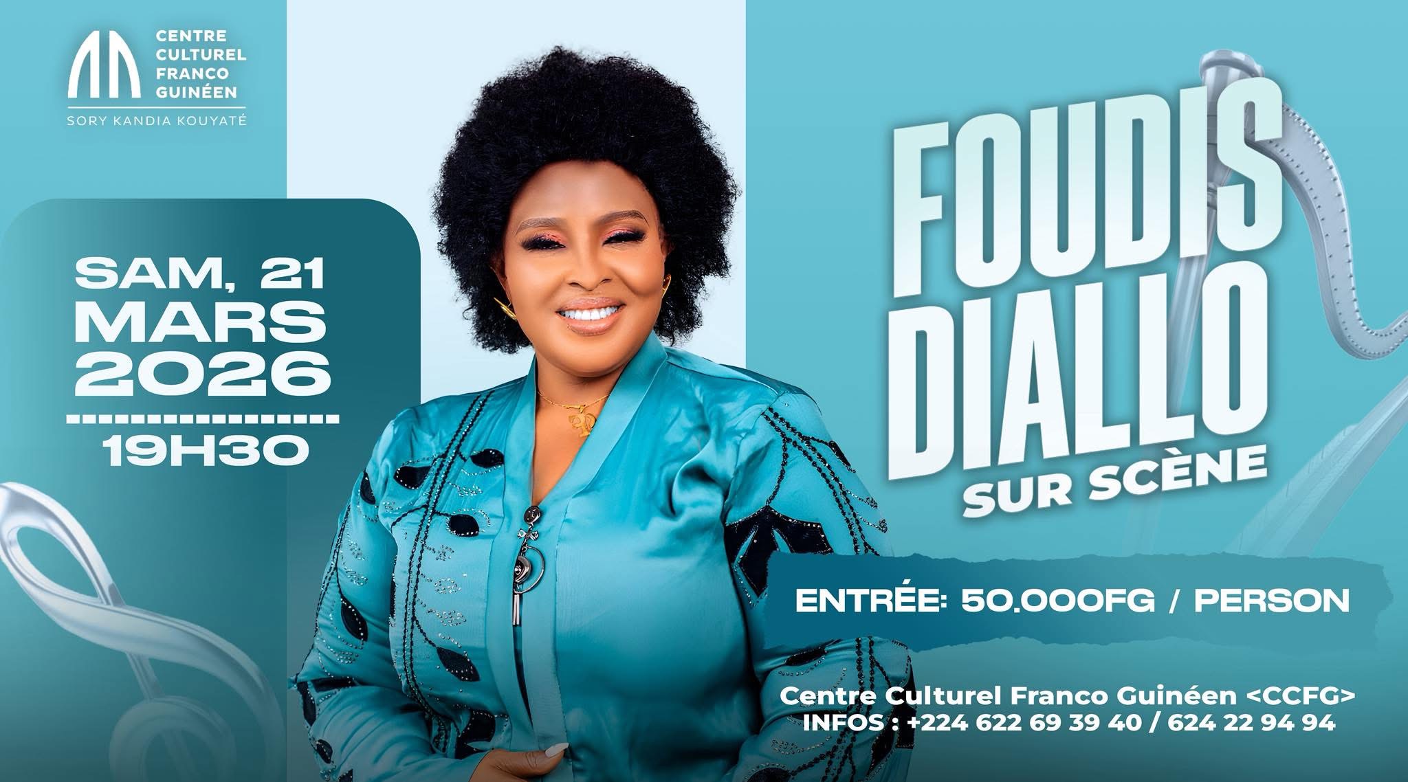 La chanteuse Foudis Diallo va prendre possession de la scène du Centre Culturel Franco-Guinéen (CCFG) pour un concert live qui s’annonce exceptionnel. Avec son style vibrant et sa présence scénique captivante, Foudis Diallo s’impose comme l’une des artistes les plus prometteuses de la scène musicale guinéenne.