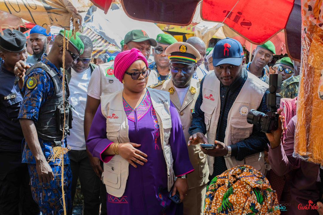 Dans les boutiques, magasins et points de vente alimentaires, la ministre a vérifié prix, poids et qualité des produits, et échangé avec les commerçants sur leurs contraintes. Au grand marché de Kindia, elle a dit sa satisfaction : les prix sont « globalement respectés », certains restant même en dessous des plafonds fixés.