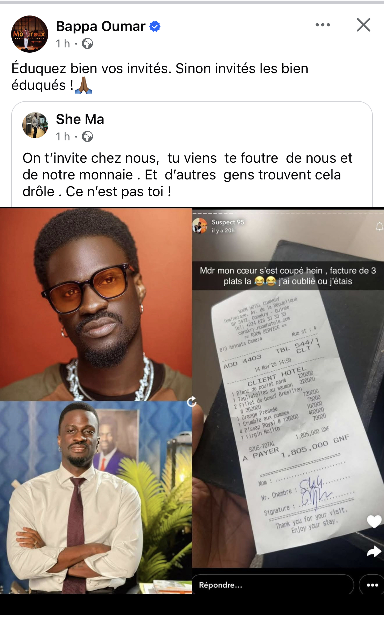 Suspect 95 se moque de la monnaie guinéenne et attise la colère des internautes